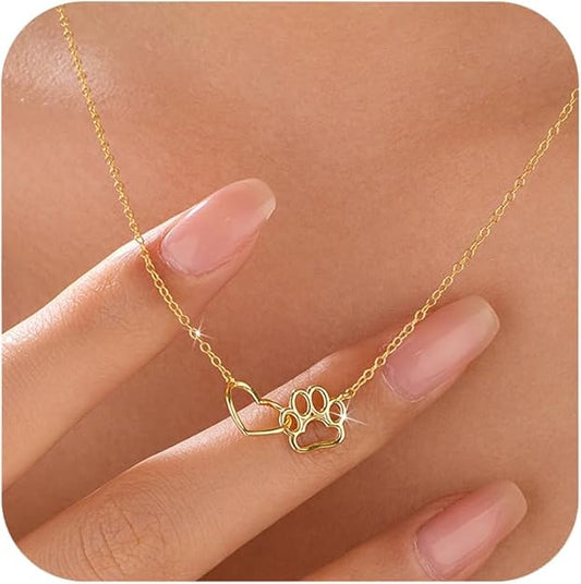 Collar huella de animal y corazón para mujer chapado en oro de 14 quilates