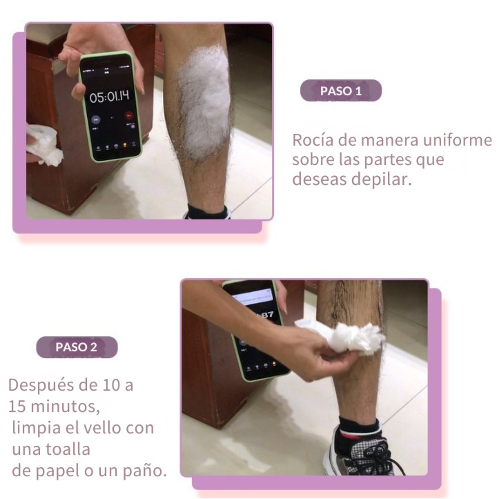 Depílate fácilmente en piernas, axilas, barba y zona íntima sin dolor ni irritación. El Spray Depilatorio Kinggess actúa en minutos, dejando tu piel suave, limpia y lista para cualquier ocasión. Ideal para hombres y mujeres que buscan resultados rápidos y seguros.
