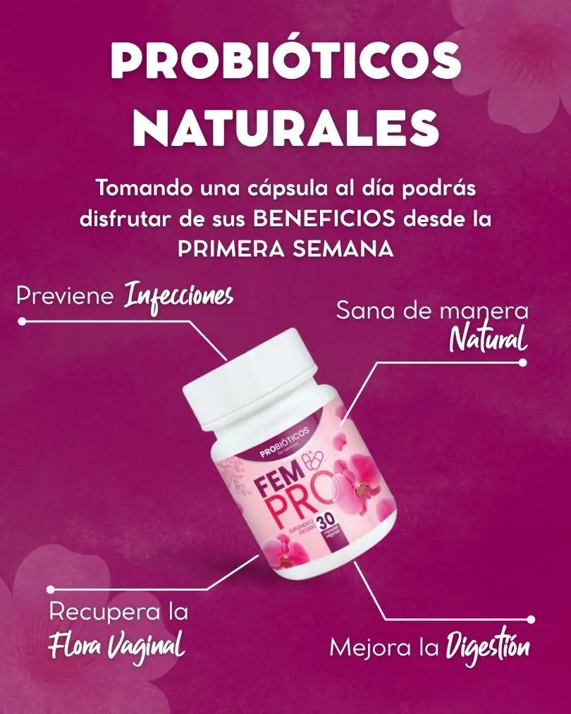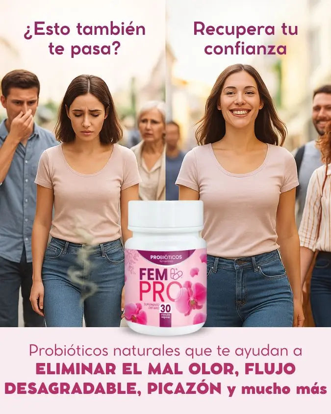 Recupera tu bienestar con FemPro, los probióticos femeninos que equilibran tu flora íntima, eliminan el mal olor y te devuelven la confianza cada día.